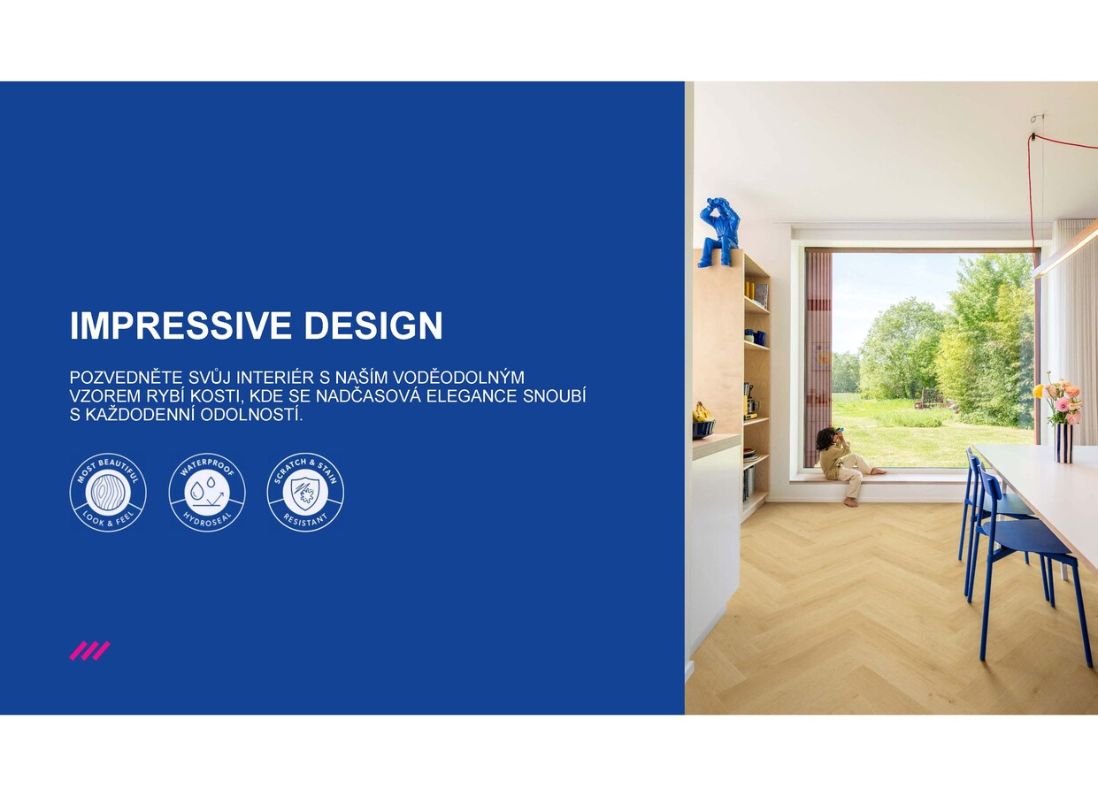 Skládají se z několika vrstev: průhledné krycí vrstvy odolné proti opotřebení, dezénové vrstvy s realistickým vzorem, pevného HDF jádra a vyrovnávací spodní vrstvy. Díky patentované technologii Scratch Guard jsou až desetkrát odolnější proti poškrábání než běžné laminátové podlahy. Navíc jsou voděodolné, což je činí vhodnými i do vlhkých prostor, jako jsou koupelny a kuchyně.